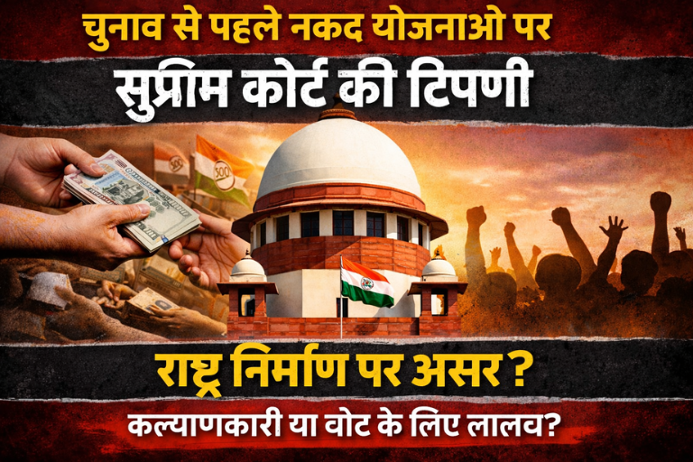 Supreme Court of India ने चुनावों से ठीक पहले नकद हस्तांतरण योजनाएँ और अन्य लाभ घोषित करने की बढ़ती प्रवृत्ति पर गंभीर चिंता व्यक्त की है। न्यायालय ने कहा कि इस प्रकार की घोषणाएँ दीर्घकालिक राष्ट्र निर्माण और आर्थिक अनुशासन पर प्रतिकूल प्रभाव डाल सकती हैं।